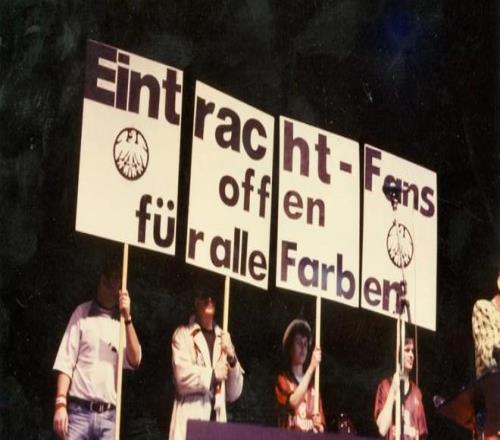 自1963年德甲成立以来,随着交通方式的升级,远征的规模与组织化程度开始系统性提升。球迷们开始集体乘坐包车与增开列车,并在20世纪70年代成立了首批官方球迷组织。到了80年代,法兰克福已拥有超过100个球迷团体,最狂热的成员以标志性的牛仔夹克聚集在看台。也是在这一时期,更具对抗性的“狂热足球团体”如Adlerfront(雄鹰阵线)和Presswerk Rüsselheim(吕塞尔海姆印刷厂)开始出现。