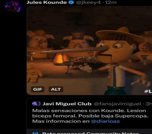 对此,孔德本人通过社交媒体间接回应了该报道,并配上“匹诺曹”表情,暗示消息不实。此外,他在赛后经过混合采访区时,被记者问及是否受伤,孔德明确予以否认;被问及是否会出战西超杯时,他也给出了肯定的答复。