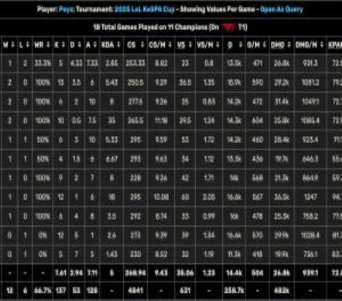 体育资讯10月9日报道宣称 数据网站DPM.LOL发布了Faker和Rookie在2025年的数据对比; 其中Rookie四项数据占优,Faker两项数据压制Rookie;